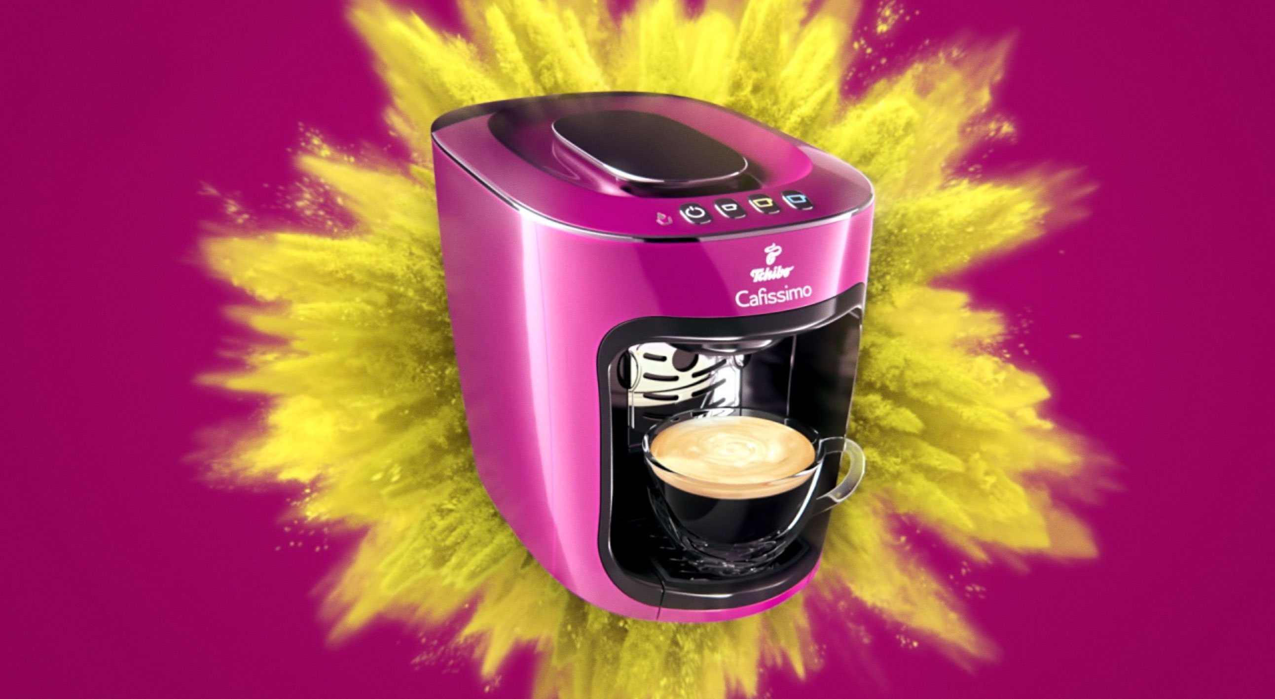 coloured, colorful, colours. The task: Creating a new TV commercial for the colorful Cafissimo MINI by Tchibo. The result: A combination of CGI and live action to create this vibrant commercial. In addition to generating the CG coffee machine and particle simulation I was also responsible for the creation of the print key visuals, along with the brand communication. In loving Cooperation with Wolf&Lamm (Directors) and Storz&Escherich (CGI).