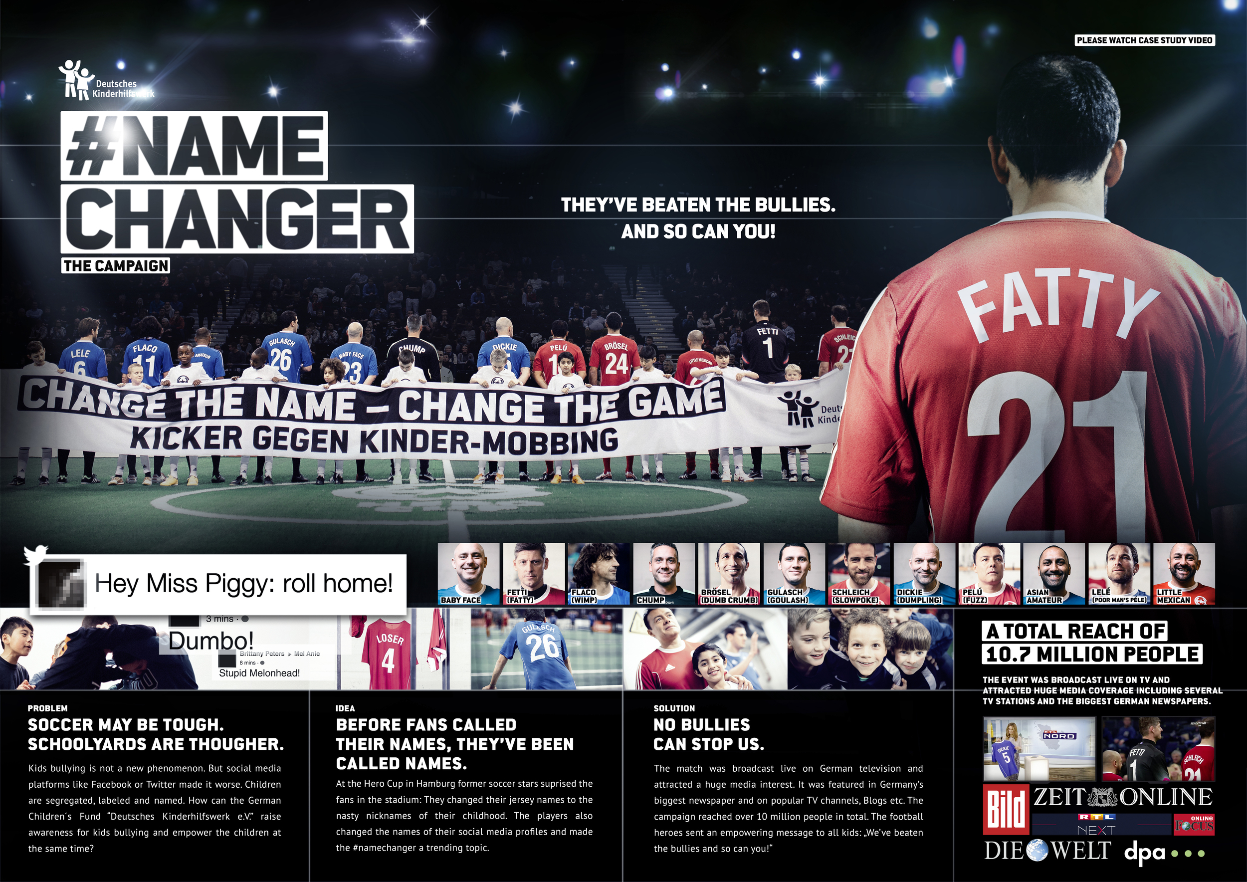 Before fans called their names, they’ve been called names. At the Hero Cup in Hamburg former soccer stars suprised the fans in the stadium: They changed their jersey names to the nasty nicknames of their childhood. The players also changed the names of their social media profiles and made the #namechanger a trending topic.